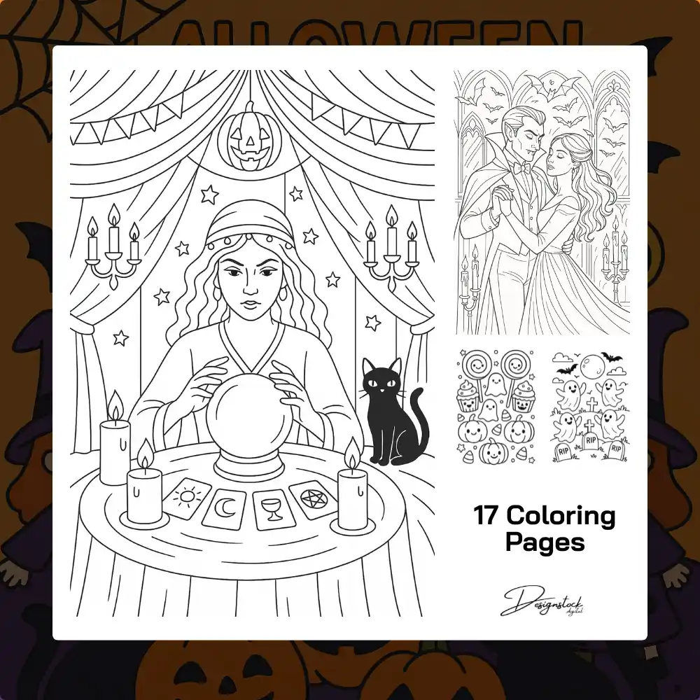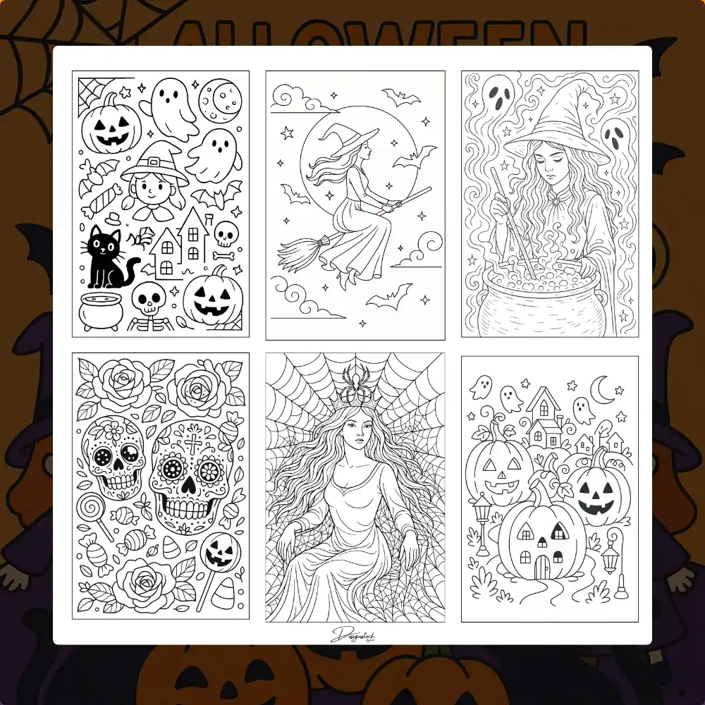 - 17 high-quality Halloween coloring pages (PDF format & PNG)