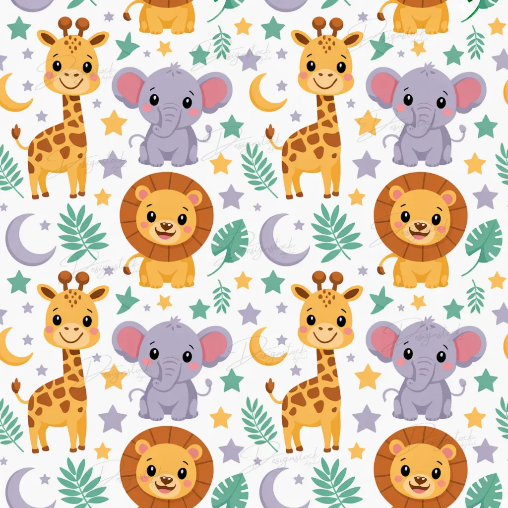 Bring the magic of the jungle into your creative projects with this Safari Baby Animals Seamless Pattern Bundle!