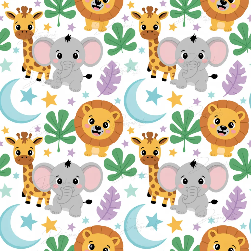 Safari Jungle Baby Animals Seamless Pattern Bundle Cute Lion, Elephant, Giraffe & Zebra 12×12″ 300 DPI Digital Download
